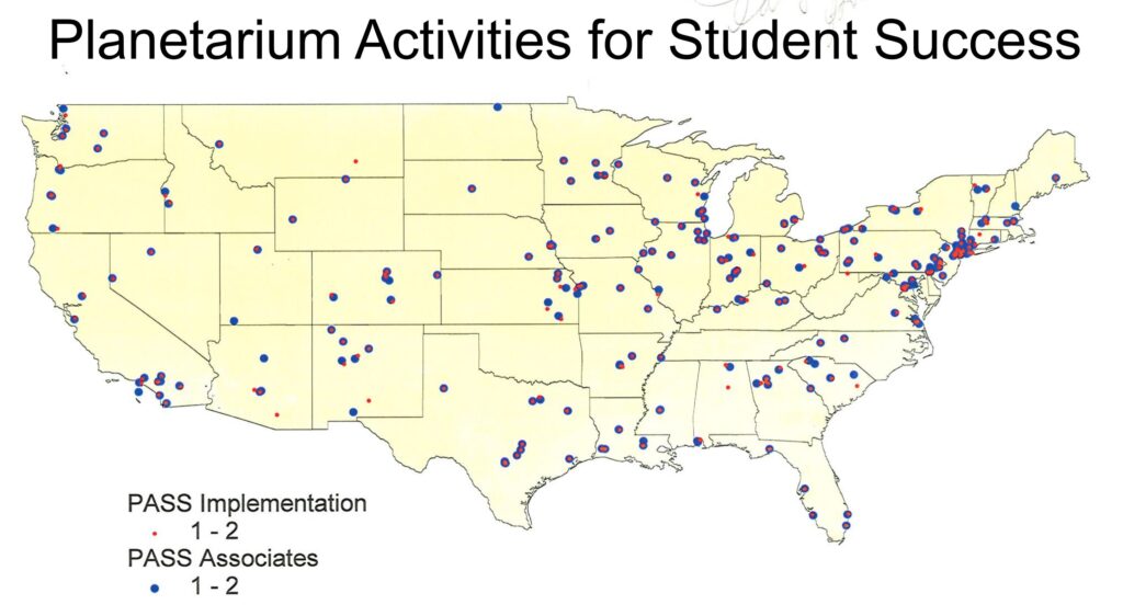 The POP workshops resulted in a publication, Planetarium Educators Workshop Guide (IPS Special Report #10). The participants/graduates of those institutes conducted in-service workshops in their school districts using an expanded Planetarium Educators Workshop Guide: a series of 12 volumes – Planetarium Activities for Student Success (PASS). Because the audience participation techniques work in both public shows and school shows, the name PASS was changed to Planetarium Activities for Successful Shows. PASS programs are not like pre-recorded products that are simply load-and-play.